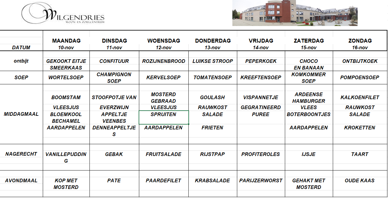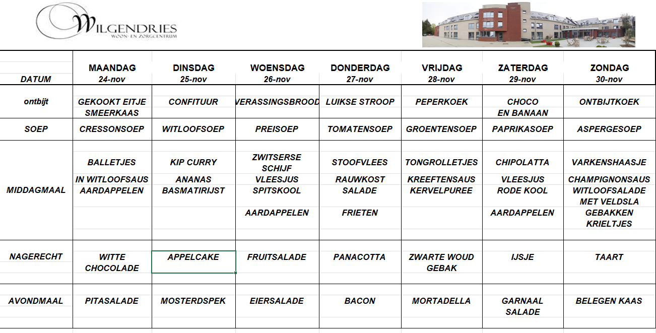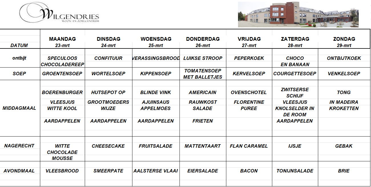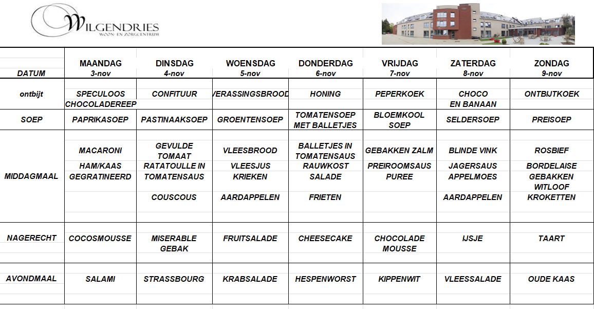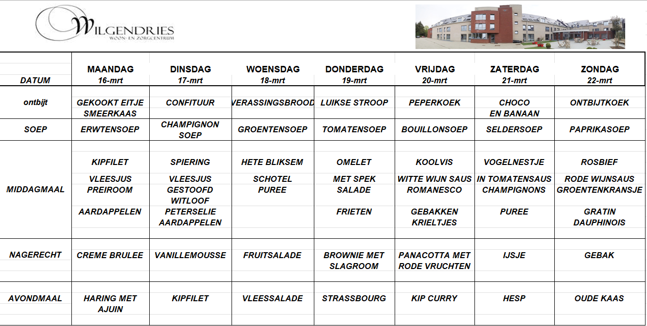 Hier vind je een weekoverzicht van onze lekkere aangepaste keuken. Smakelijk!
